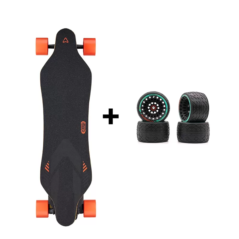 The Meepo Voyager X electric longboard is a flagship e-skate from Meepo. While less expensive than the Meepo Hurricane, the Voyager X is lighter, more compact, and includes two different types of wheelsets. With impressive features that include high top-speed and range, the Meepo Voyager X is an all-rounder electric skateboard that can also be used as an all-terrain electric longboard.
