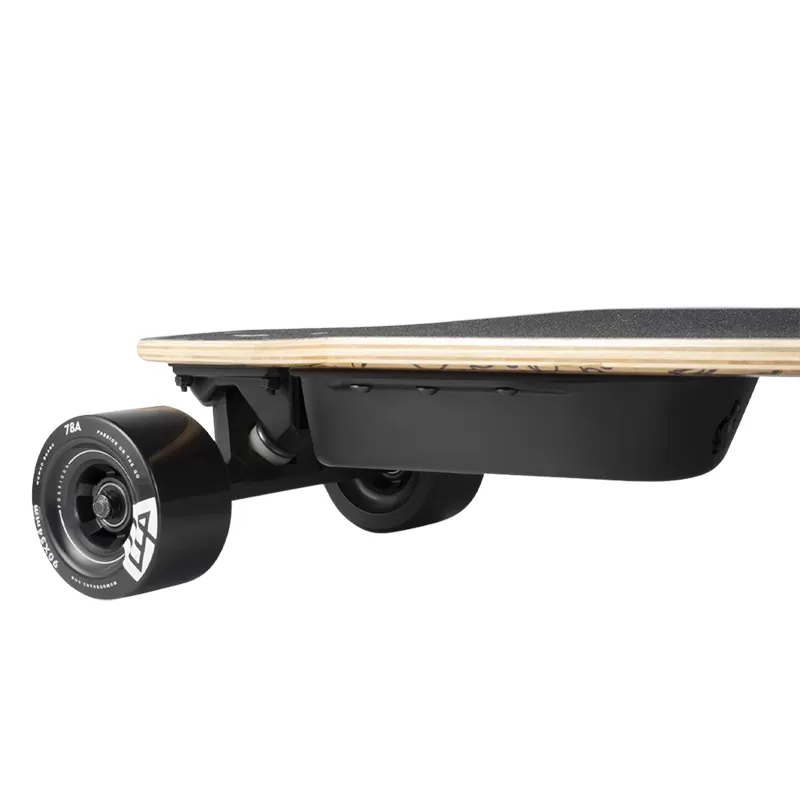 ✓ Exclusive front truck Installed is a newly customized 50°, 8-inch front truck with 85A bushings, allowing for plenty of fun and easy carving. The new front truck offers better control over the eboard while riding at high speeds and complements the deck to let the rider feel what’s going on underneath them at all times.