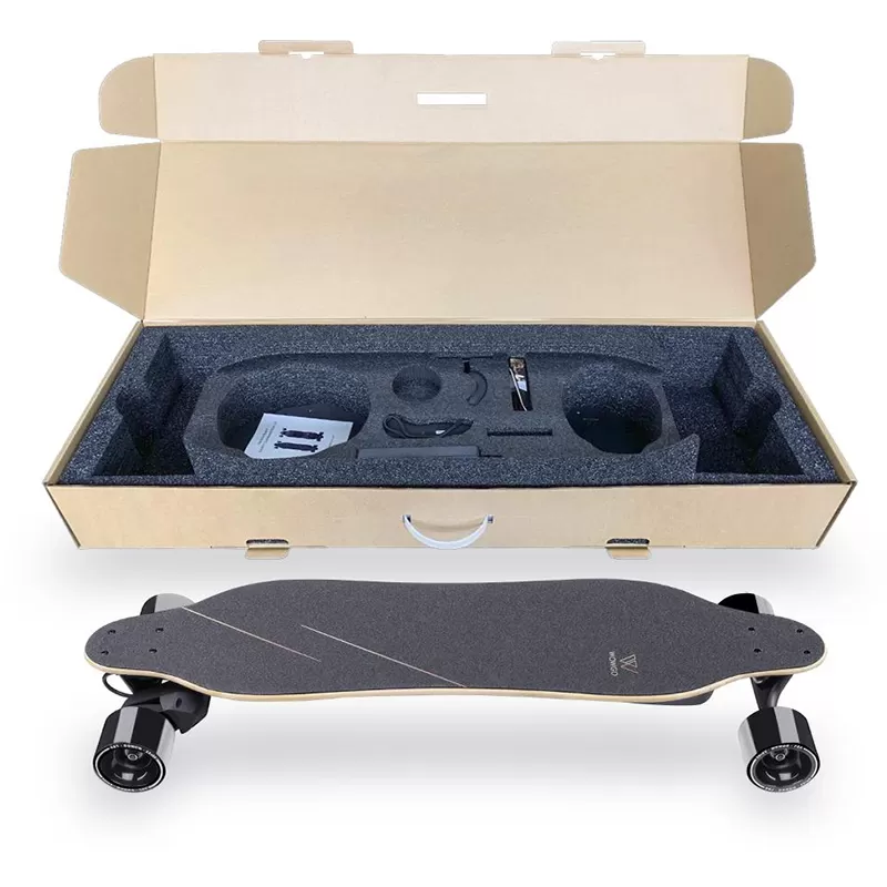 Completely Assembled WowGo 3X Board, new Smart LCD wireless remote and charging cable, 2 extra replaceable Gates or Continental 5M belts, 2 extra replaceable pulleys, pair of extra Foam for you to do deck swap, certified adapter and charger, T wrench and other tools for daily maintenance, hook to hang your board, rear LED light, user manual.