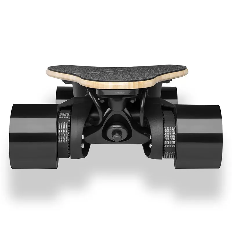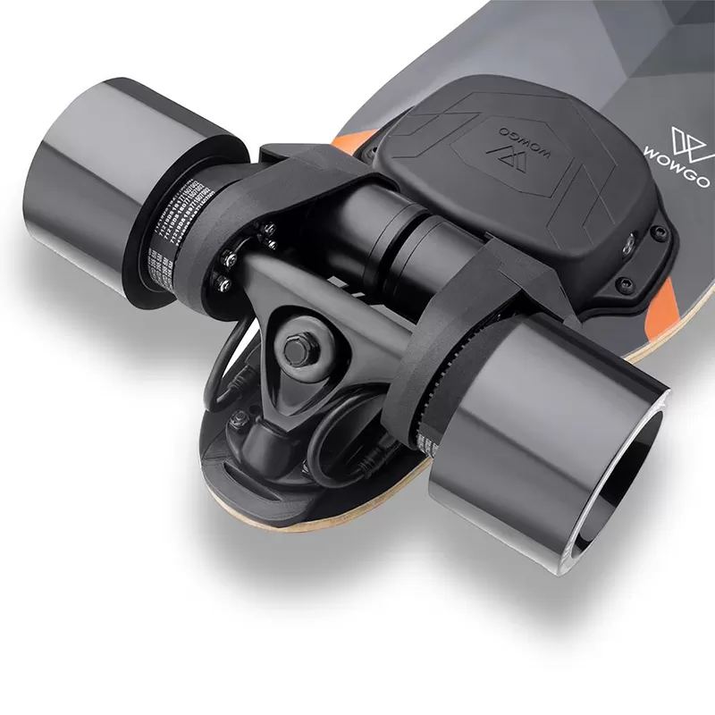 ✓ New custom trucks Another feature where the WowGo 3X model shines is the trucks and motor mounts. While the front wheels are mounted using the legendary Paris V2 trucks, the back wheels and motors are mounted with a custom developed truck, proprietary to WowGo. These features make this longboard extremely stable at a higher speed while keeping the ability to do tight turns safely.