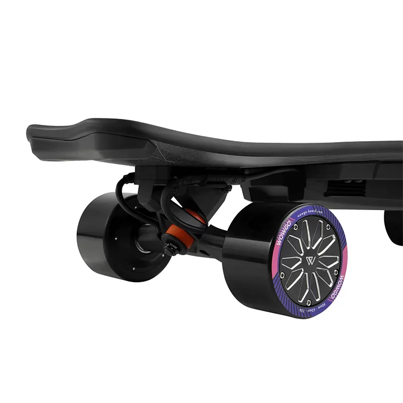 ✓ Wheel Options Depending on which option is purchased, the WowGo Mini 2 electric skateboard can come with either 90 x 62 mm 78A polyester urethane street wheels, 105 mm Cloudwheel Donuts, or both in the 2 in 1 option. The standard street wheels are great for developed urban roads but for rough uneven surfaces or an overall smoother riding experience, the Cloudwheels are an excellent choice to consider.